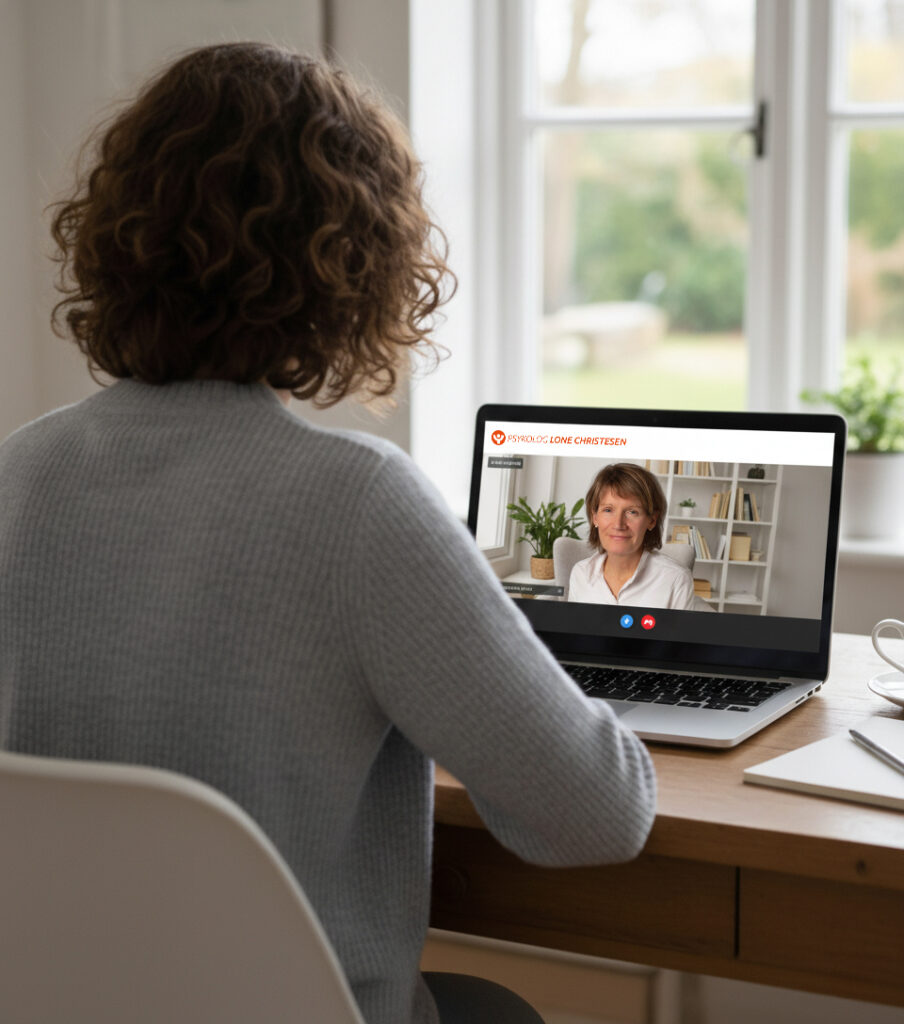 Online terapi fungerer på mange måder som traditionel samtaleterapi – den primære forskel er, at sessionen foregår via et sikkert videoopkald i stedet for i min klinik.